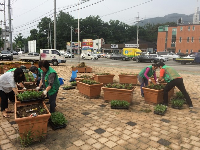 자생단체 회원들은 의정부시 도시농업기술과에서 녹색환경 조성 및 도시농업 활성화를 위해 육성한 천일홍 모종을 공급받아 만가대사거리 교통섬과 주민센터 주변 등 화단에 식재했고, 주변 이면도로의 잡초를 제거하고 쓰레기를 주우며 깨끗한 송산1동 만들기에 앞장섰다.