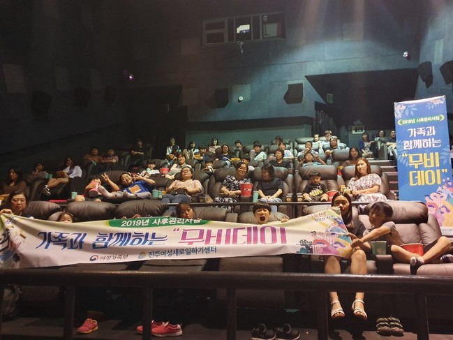 진주시 능력개발원 부설 진주여성새로일하기센터는 지난 17일 오후 7시 롯데시네마 엠비씨네 진주점에서 새일센터를 통한 취업자와 그 가족을 대상으로 ‘2019년 새일센터 사후관리사업 취업자 무비데이’행사를 열었다고 밝혔다.