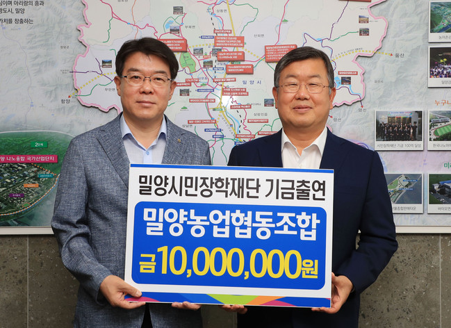 밀양시민장학재단은 18일, 밀양농업협동조합에서 지역우수인재양성과 밀양지역 명문학교 육성지원을 위한 장학기금 1,000만 원을 전달했다고 밝혔다.