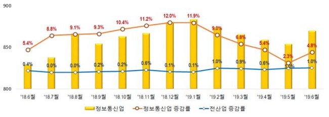 과학기술정보통신부에 따르면 2019년 6월 정보통신업 취업자는 86만 9천명으로 전년 6월 대비 4만 명 증가했고 18개월 연속 증가세를 기록했다.