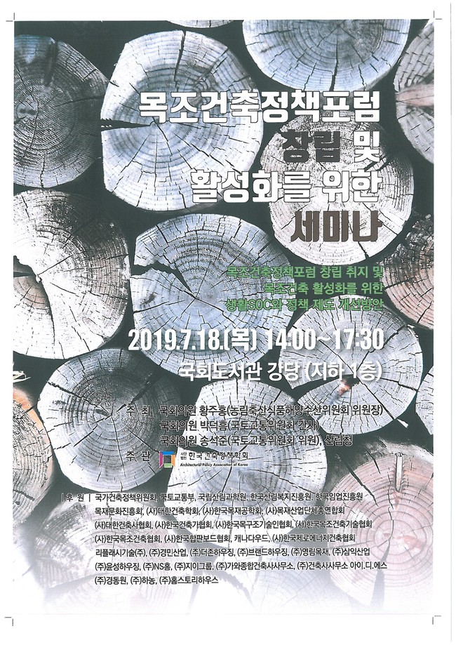 산림청은 18일 국회도서관에서 국회 농림축산식품해양수산위원회 및 국토교통위원회와 공동으로 ‘목조건축활성화 세미나’를 개최했다.