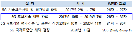 ITU는 이번 회의에서 5G 후보기술 접수를 마감하고 ITU 국제평가그룹의 공인된 외부 평가 및 검증을 거쳐 2020년에 5G 국제 표준안을 최종 공표할 예정이다.