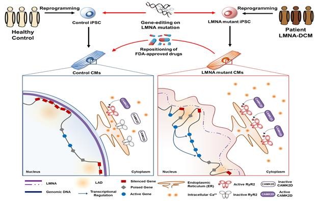 유전자 가위 기술로 특정 단백질 유전자의 변이를 정상으로 교정하였을 때 분화된 심근세포의 핵막이 정상적으로 돌아오는 것을 관찰하였으며 반대로 변이를 유발하였을 때 핵막의 이상이 나타나는 것을 확인했다.