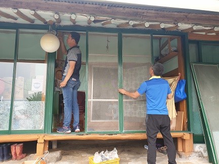 특히 지난 15일과 16일에는 주거환경이 열악한 노인 및 장애인 세대 총 5가구를 찾아 훼손된 방충망을 직접 수리하고, 사용 불가능한 제품들은 새로 교체까지 해주면서 여름철 찜통더위에 대한 근심을 덜어냈다.