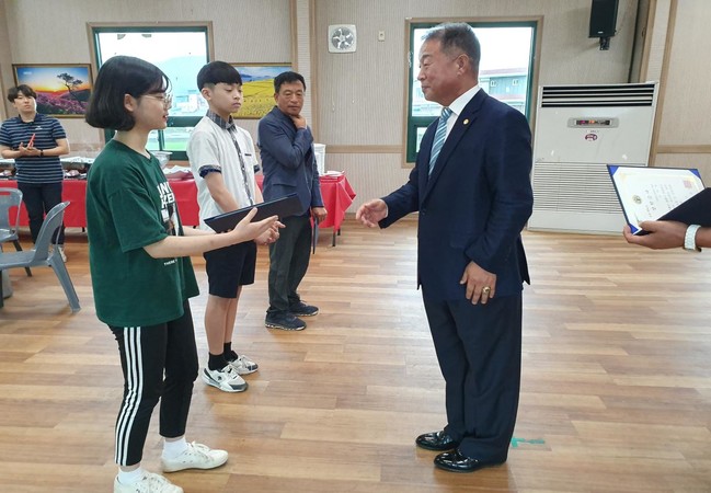 이날 행사에서 솔관회는 지역 학생 6명에게 190만원의 장학금을 전달했다.
