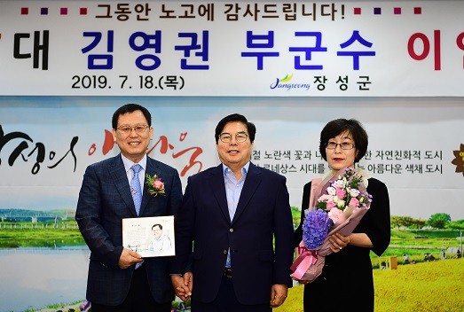 김영권 부군수는 재직 동안 황룡강 가을 노란꽃잔치의 2년 연속 100만여 명 방문 기록과, 20년 역사의 장성 홍길동 축제와 황룡강 꽃길의 조합을 통해 지난 5월 새롭게 선보인 ‘길동무 꽃길축제’의 성공 등 옐로우시티 장성의 변화와 성장에 있어 중추적인 역할을 맡았다.