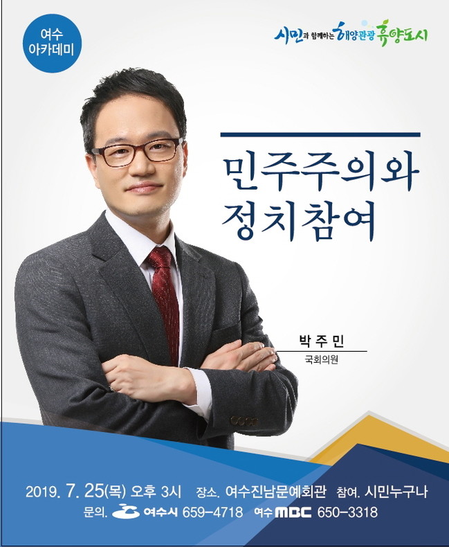 여수시는 오는 25일 오후 3시 진남문예회관에서 ‘민주주의와 시민참여’라는 주제로 7월 여수아카데미 시민교양강좌를 개최한다고 밝혔다.