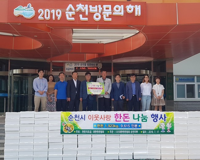 한돈협회 순천시지부는 매년 추석과 설 명절 돼지고기 나눔을 꾸준히 실천해 오고 있으며, 올해도 설 명절을 맞아 나눔행사를 갖었다.