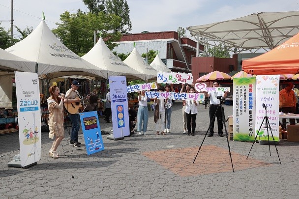 이날 캠페인에서는 전라남도 청년 버스킹 공연을 연계해 교통안전 메시지를 전달하는 동시에 전통시장 이용 지역민에게 생활 속 폭염피해를 예방을 위한 쿨 토시, 쿨 스카프, 부채 등 홍보물품 3,000여개를 전달했다.