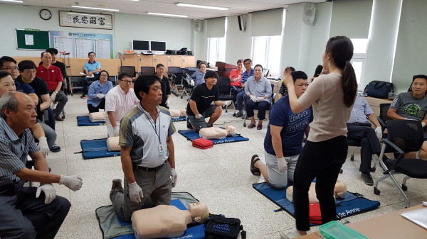 교육은 자동심장충격기 사용법을 비롯해 심폐소생술, 인공호흡법 등을 숙지할 수 있는 4시간의 심화과정으로 진행, 심폐소생술 테스트를 통해 수료증을 발급했다.