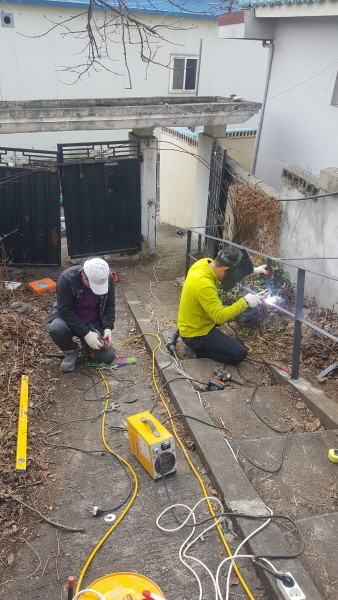 난간 공사 진행