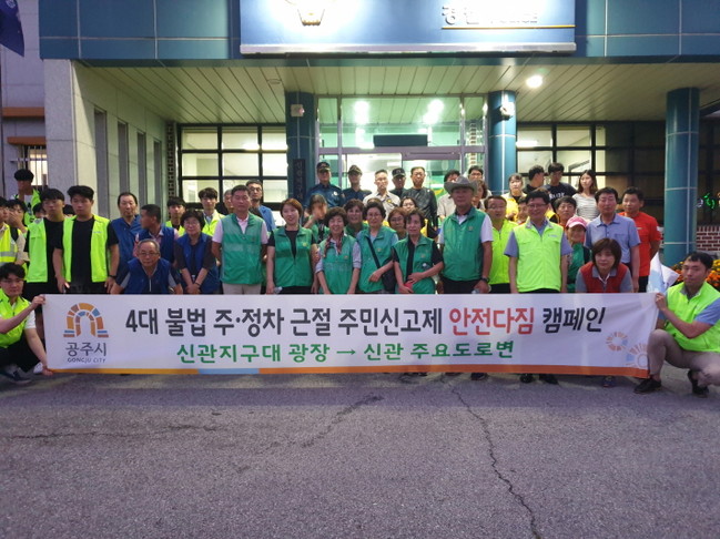 공주시는 지난 18일 신관지구대 광장에서 민관 합동으로 4대 불법 주·정차 주민신고제의 조기 정착을 위한 캠페인을 실시했다.