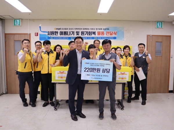 오산남부종합사회복지관은 지난 18일 이마트 오산점과 연계해 지역 내 독거어르신 40명을 대상으로 어르신 원기회복 프로젝트-시원한 여름나기 물품 전달식을 진행했다.