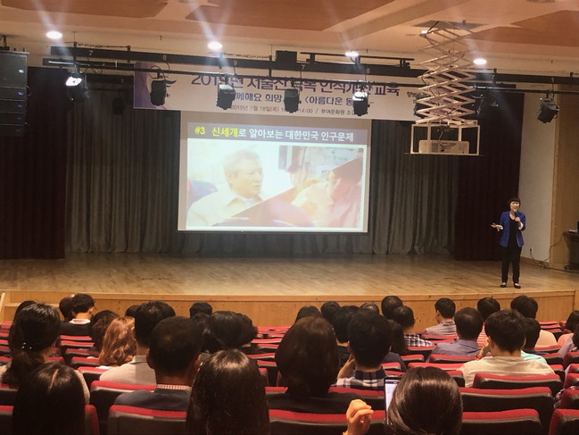이번 교육은 인구보건복지협회 대전충남지회 소속 송남영 강사를 초빙해 ‘함께해요 희망세상, 아름다운 동행‘이라는 주제로 2시간동안 2회에 걸쳐 진행됐다.