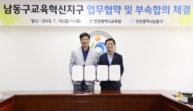 인천광역시교육청과 남동구는 19일 인천광역시교육청 영상회의실에서 남동구 교육혁신지구 업무협약 및 부속합의를 체결했다.