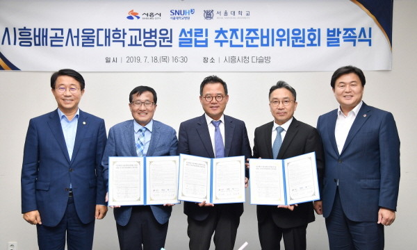 시흥시·서울대학교병원·서울대학교는 지난 18일 시흥시청에서 ‘시흥배곧서울대학교병원 설립 추진준비위원회 발족식’을 개최했다.