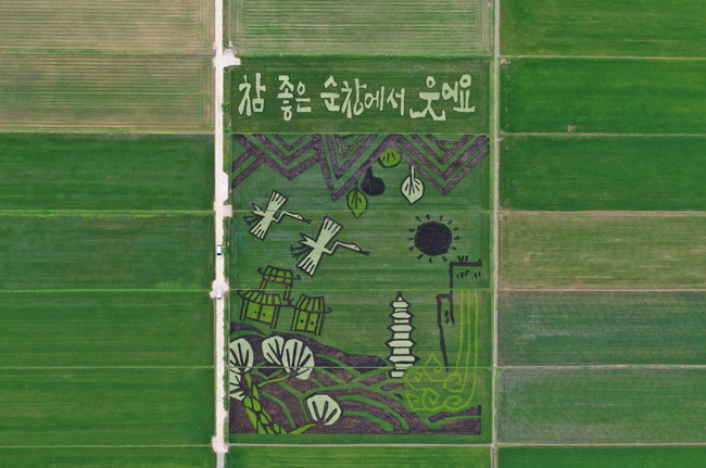순창군이 지난 6월 초에 순창군 적성면 괴정리 15,000㎡ 논에 조성한 유색벼 논그림이 모습을 드러내면서, 많은 사람들이 순창군의 3대 명산 중의 하나인 채계산을 찾고 있다.