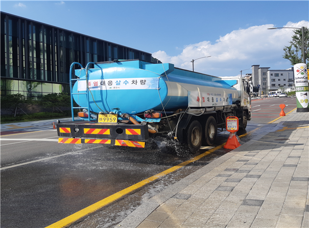 폭염 특보 발효 시 주요 6개 노선에 도로 살수차를 운영중이며 지원 요청 시 녹지대 살수와 식수 지원도 진행한다.