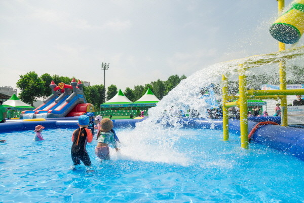 서울 강서구는 19일 우장산근린공원 축구장에 가족이 함께 피서를 보낼 수 있는 ‘어린이 물놀이장’을 개장했다.