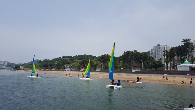 웅천해변 폰툰과 대형 물놀이 풀에서 무료로 요트·모터보트를 체험할 수 있고, 생존수영과 심폐소생술도 배울 수 있다.