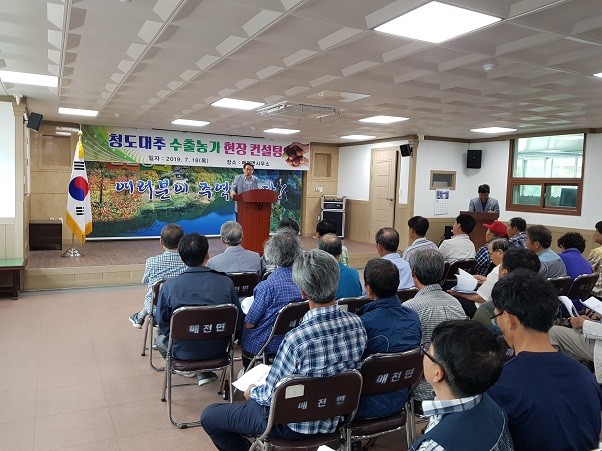 이날 컨설팅은 청도군과 농산물품질관리원 청도사무소에서 농가의 애로사항 상담 및 국가별 맞춤형 전략, 글로벌 GAP 및 잔류 농약 검사 등을 통한 품질관리 방법 등에 대한 컨설팅을 했다