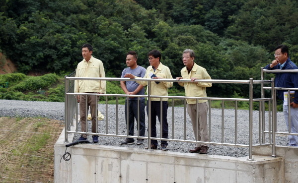 이재근 산청군수 태풍 다나스 대비 월곡저수지 현장점검