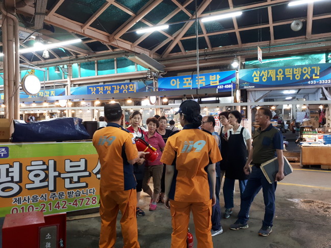 김천시는 지난 18일 오후 전통시장 화재안전 대책의 일환으로 평화시장, 황금시장에서 상인들을 대상으로 전통시장 소방훈련을 실시했다.