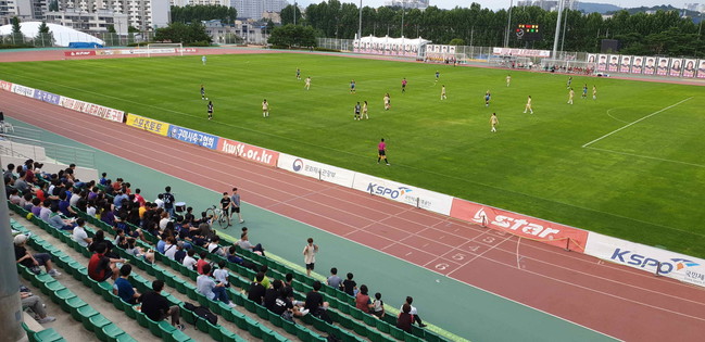 ‘구미대 천무응원단’의 화려한 응원으로 시작한 이날 경기에서는 전반 24분에 유영아 선수의 골을 시작으로 후반 16분 박찬휘 선수, 33분 김성미 선수, 45분 마지막 박은선 선수의 마무리 골로 시원한 장맛비처럼 화끈한 골세례를 퍼부으며, 여자축구에 대한 구미시민들의 뜨거운 관심에 호응하듯 여름 더위를 한방에 날려버릴 시원한 승리를 거뒀다.
