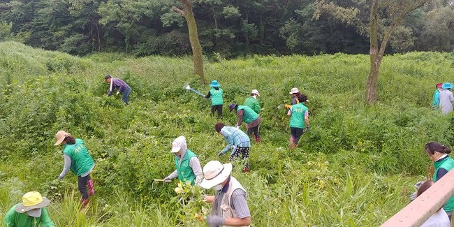 이날 회원들은 사람이 많이 이용하는 하천변을 중심으로 교란식물을 뿌리채 뽑거나 어린개체를 집중 제거하는 등 효율·효과적인 작업으로 교란식물의 번식을 최소화했다.