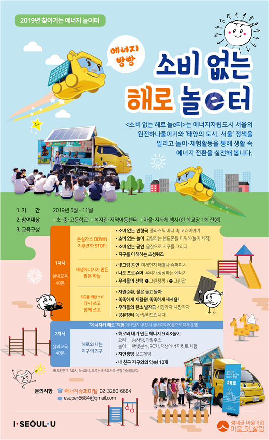 ‘찾아가는 에너지 놀이터’ ‘해로’와 ‘해요’ 프로그램은 7월 23일 오전 10시부터 선착순으로 하반기 교육 신청을 받는다.