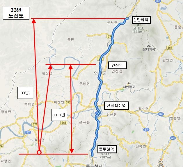 또한, 33번은 신탄리 주변 상권을 기반으로 하는 소상공인지원 정책과 연결해 신서권역 지역경제 활성화를 위해 신탄리역에서 출발하는 대중교통시간 연장이 필요하다는 의견에 따라 기존 오후 9시 30분 마지막 차 이후 오후 10시 50분 출발하는 노선을 신설했다.