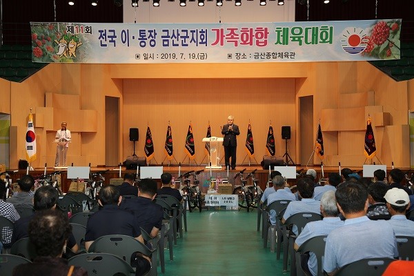 지난 19일 ‘제11회 전국 이·통장연합회 금산군지회 가족화합 체육대회’가 10개 읍·면 257개 마을 이장 및 가족 등 800여명이 참석한 가운데 금산종합체육관에서 성황리에 개최됐다.