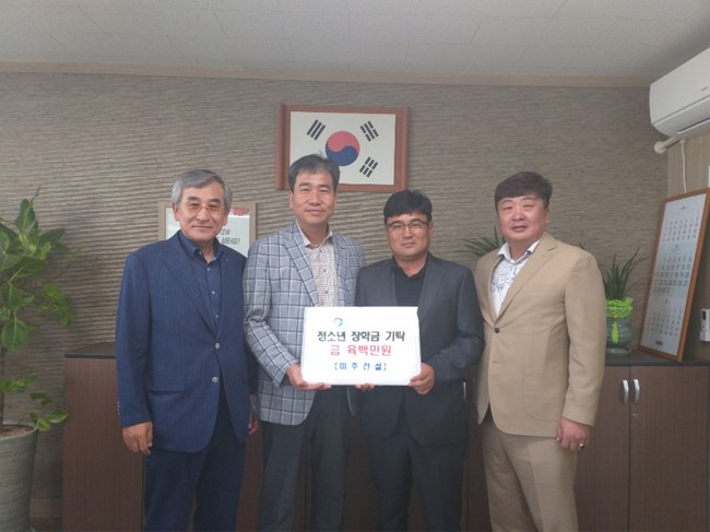 ㈜미주건설은 현재 관내 덕포진 문화마을 조성사업을 추진 중에 있는 건설업체로 이승후 대표는 “어려운 환경에서도 꿈을 갖고 미래에 도전하는 청소년들의 꿈을 응원하고 싶어 장학금을 기탁하게 됐다. 미래의 희망인 청소년들이 희망을 가지고 비상할 수 있도록 응원하겠다”고 말했다.