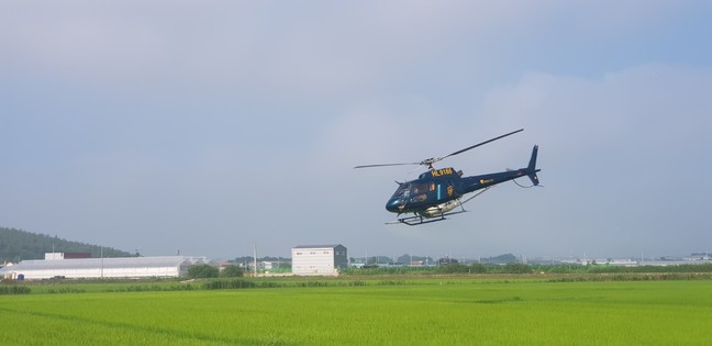 김포시농업기술센터, 벼 병해충 항공방제 실시