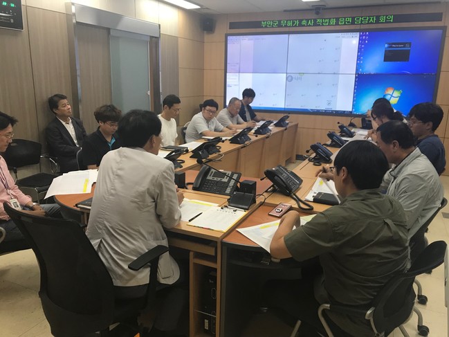 부안군은 지난 19일 군청 재난상황실에서 축산·환경·건축 부서 및 읍·면 산업 담당자가 참석한 가운데 무허가 축사 추진상황 읍면 담당자 회의를 개최해 지금까지의 추진상황을 점검했다. 이번 회의는 무허가축사 적법화 이행기간 종료일이 2개월 남짓 남은 상황에서 무허가 축사 적법화의 기한 내 마무리를 위해 마련됐다.