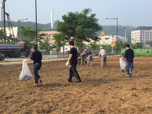 이날 통장협의회는 직접 코스모스씨를 구입해, 유휴공간으로 남아있는 민락국민체육센터 부지 2,400㎡에 무성한 잡초와 마구 버려진 쓰레기를 제거하고, 코스모스씨를 파종해 ‘The G&B CITY’ 만들기에 적극 동참했다.