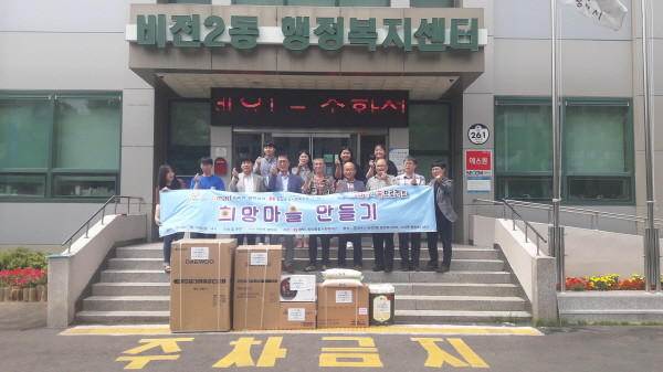 평택시 비전2동 행정복지센터는 지난 19일 이마트, 합정종합사회복지관 등 관계자가 참석한 가운데 비전2동 사례관리 대상자에게 200만원 상당의 후원 물품 지급식을 가졌다.