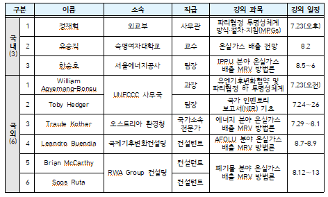 특히 유엔기후변화협약 사무국과 오스트리아 환경청 등 주요 국제기관의 전문가들도 강사로 참여했다.