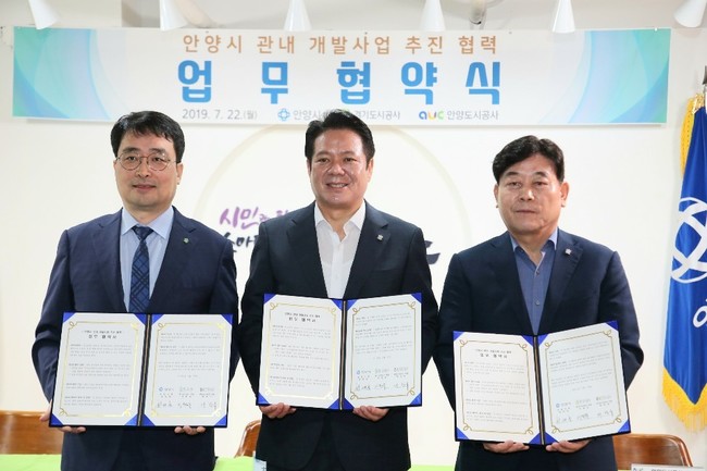 안양도시공사, 안양시, 경기도시공사는 22일 안양시청에서,‘안양시 관내 개발사업 추진 협력을 위한 업무협약’을 체결하고 상호 협력해 나가기로 합의했다.