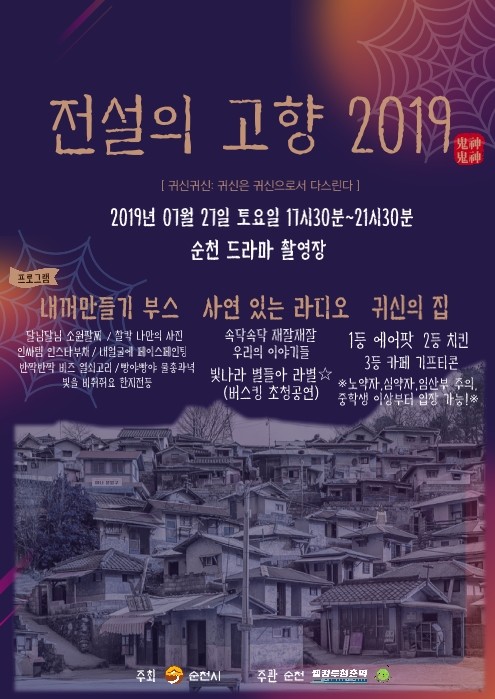 순천시는 오는 27일 밤까지 순천드라마촬영장에서 ‘전설의 고향 2019’를 주제로 ‘제7회 하계 청춘 페스티벌’을 개최한다.