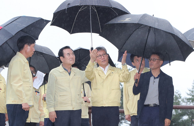 지난 20일 제5호 태풍 ‘다나스’로 함양군 최고 155mm의 강우가 발생해 호우 및 산사태 주의보가 발령된 가운데 김재현 산림청장이 함양군 산림재해 복구사업장을 점검했다.