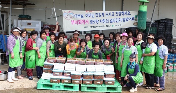 또한 마한농협 부녀회 회원 36명은 분주한 일상을 잠시 접어두고, 한 여름 별미 열무김치를 담가 마을 경로당 어르신들에게 전달했다.