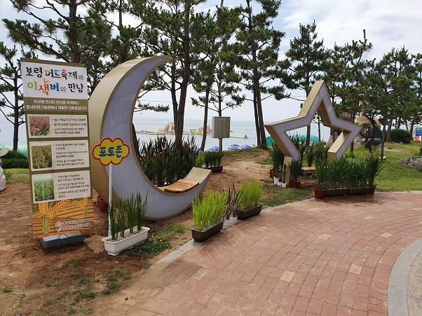 도 농업기술원은 전시 부스 설치와 함께 바다를 배경으로 한 달과 별 포토존 주변을 관상용 이색 벼로 단장해 머드축제를 방문한 관광객들의 눈길을 끌고 있다.