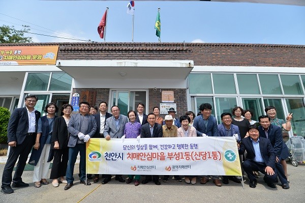 천안시 서북구치매안심센터는 지난 22일 신당1통 마을회관에서 구본영 시장을 비롯한 마을 주민이 참여한 가운데 치매안심마을 현판식을 열었다.