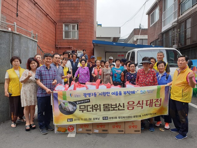 김웅일 광명3동장은 “항상 어르신들을 위해 애써주시는 광명3동 누리복지협의체에 감사하고 폭염으로 인해 자칫 건강관리에 소홀하기 쉬운 어르신들이 정성껏 준비한 삼계탕을 드시고 올 여름 더욱 건강하고 행복하게 보내셨으면 좋겠다”고 전했다.
