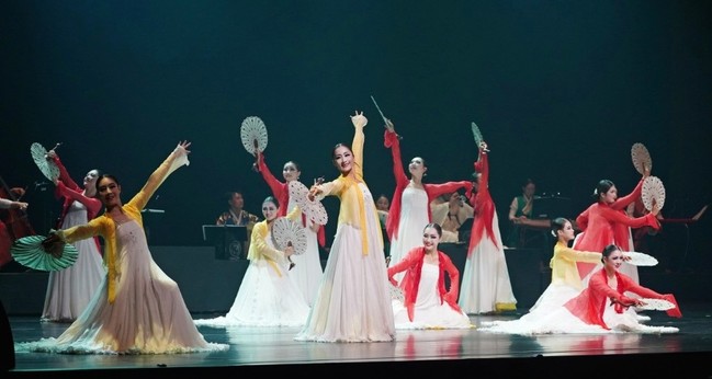 이번 무대는 유네스코 인류 무형유산으로 지정된 한산모시 짜기와 충남 무형문화재 제21호 서천부채장의 공작부채를 모티브로 ‘전통무용단 혼’이 열연을 펼친 가운데 토, 음, 천, 무 총 4막으로 구성됐다.