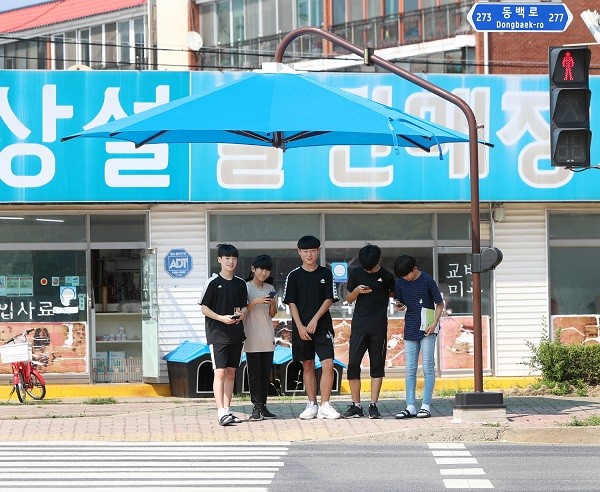 군은 생활밀착형 무더위 대책의 일환으로 이달 1,300만원의 예산을 들여 군청입구 오거리, 그린농축가 건너편 천월교차로 등 2개소에 폭 3.5m, 높이 2.4m의 그늘막 5개를 추가로 설치했다.