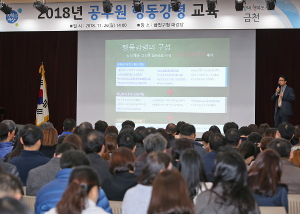 금천구가 오는 25일 오후 2시 구청 대강당에서 구 소속 공무원과 금천문화재단, 금천구시설관리공단 직원을 대상으로 ‘2019년 공무원 행동강령 교육’을 실시한다.