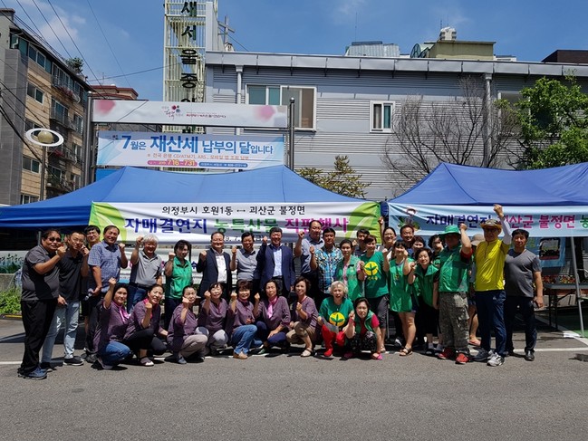 의정부시 호원1동은 지난 19일 호원1동 주민센터 앞에서 자매결연 농촌인 충청북도 괴산군 불정면과 함께 우수한 농산물을 저렴한 가격으로 제공하고자 농산물 직거래 장터를 개최했다.