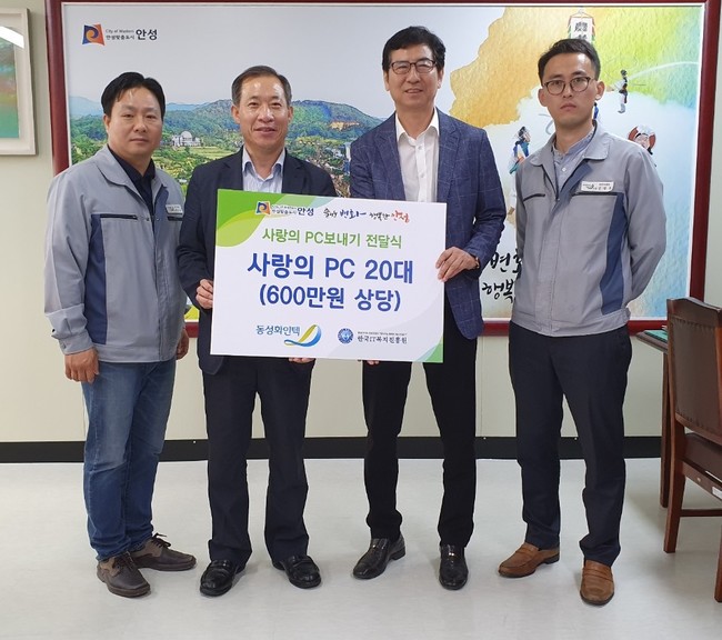 안성시는 23일 동성화인텍과 한국IT복지진흥원에서 ‘사랑의 PC’ 20대를 안성시에 기탁했다고 밝혔다.